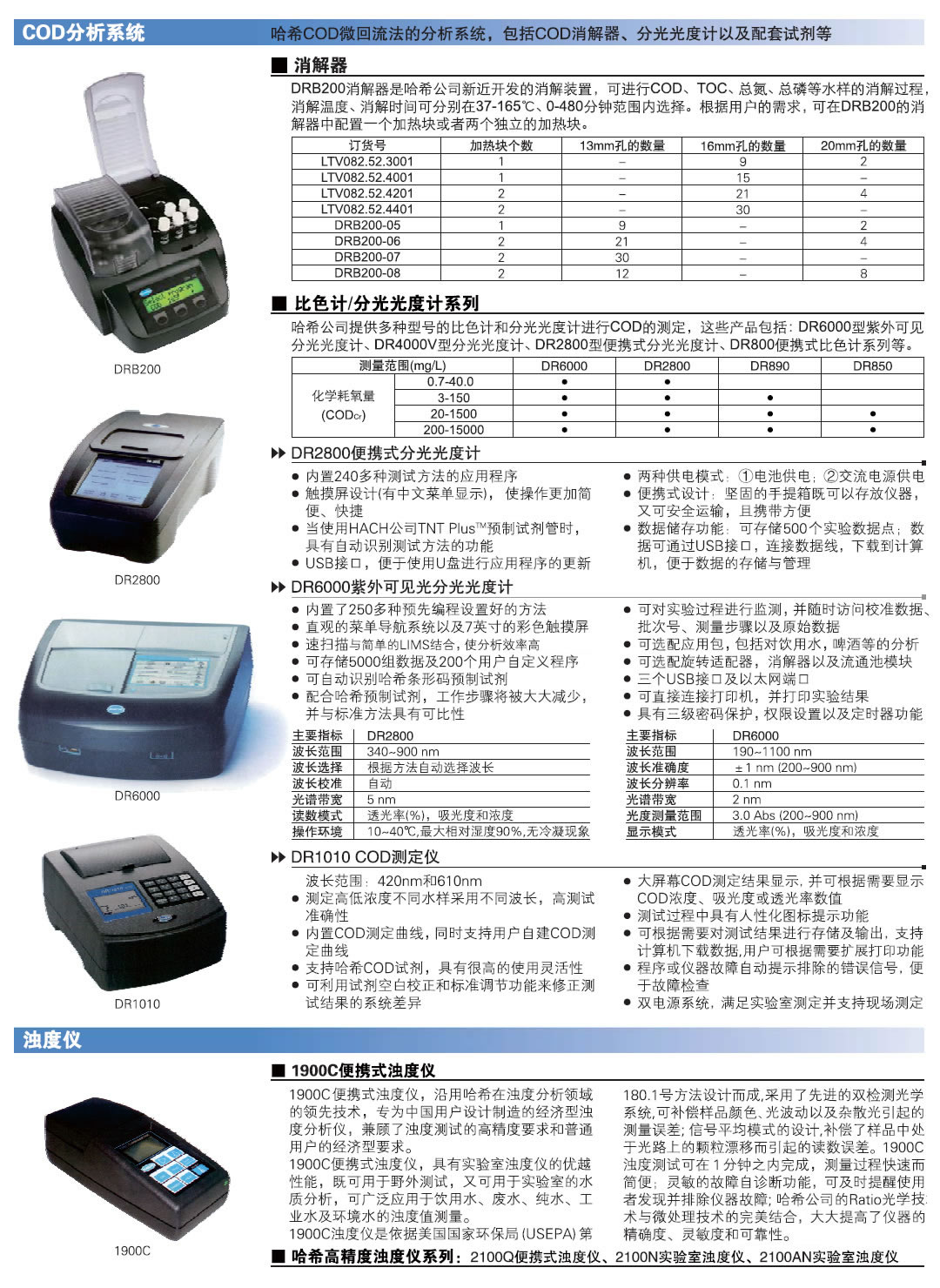 哈希(HACH)COD消解器、比色计/光度计、浊度仪